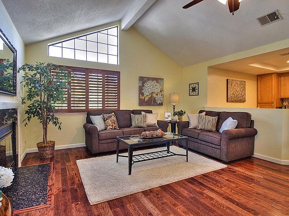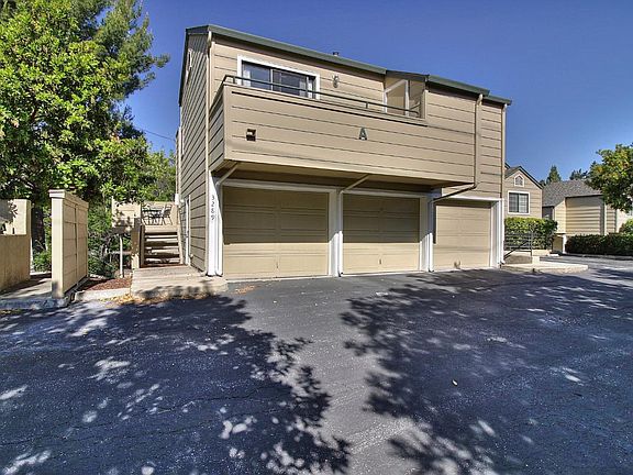 Wonderfully spacious end unit located in a peaceful hillside complex near Communication Hill. Soaring ceilings & plenty of natural light. Beautiful hardwood floors throughout. Kitchen features granite counters & stainless appliances. Generous-sized bedrooms with ample closet space. Wood fireplace, central a/c & two decks. Laundry located inside & an attached garage.