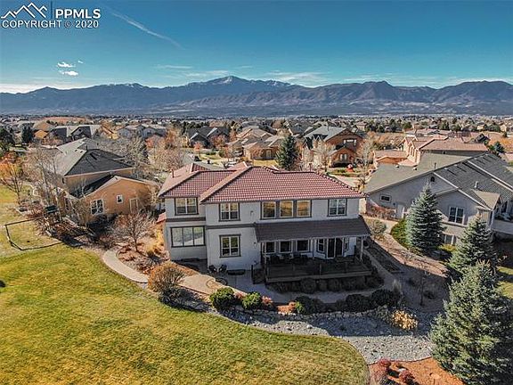 Incredible Pine Creek home on spectacular lot with Pikes Peak views on a cul-de-sac, backing to Pine Creek Golf Course. This home is move-in ready boasting brand new remodeled bathrooms, neutral paint & brand new carpet through out! Stunning 2-story foyer & extensive hardwood floors that lead through archways to the formal living room. The dining room is elegantly appointed with butler?s pantry. The great room has soaring ceilings, wall of cascading windows that overlook Pine Creek hole #4 and cozy gas fireplace! A gourmet?s delight, the recently remodeled kitchen offers quartz counters, subway tile backsplash, center island with gas stove, stainless appliances, pantry, planning desk & dining nook. Walk out to the expansive composite deck overlooking the private back yard. French doors lead to the main level study which is a perfectly positioned work space. Unwind in the master retreat with sitting area, fireplace, luxurious remodeled 5pc bathroom with jetted tub and his and her walk-in closets. Two secondary bedrooms and full bathroom complete the upper level. Host the Big Game in the sprawling lower level family room pre-wired for surround sound with wet bar & billiards/gaming area. Two spacious bedrooms, full bath & storage room complete the lower level. With this nearly half acre lot, you will enjoy the covered deck overlooking the beautifully landscaped yard. You are just minutes to shopping, dining, golf, I-25 and Powers Blvd. with easy access to USAFA, downtown Colorado Springs & Denver. This home has been immaculately cared for by owners and offers renovated kitchen; bathrooms; updated lighting; dual furnaces, A/C & humidifier units; newer water heater; four gas fireplaces. Don?t miss this stunning home with spectacular Golf Course location!