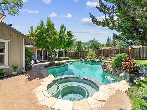 Impeccable, Move-In Ready, SINGLE STORY, tastefully upgraded, must see home on cul-de-sac! 3 Car Garage plus concrete side yard for RV/Boat/Toys! Entertainers delight with sparkling POOL, HOT TUB, stained concrete patio, redwood deck area, mature landscaping plus separate fenced grass area with playhouse. New HVAC (2017), Roof (2007), SOLAR heated pool, upgraded Windows, Pool resurfaced (2007), Pool equipment (2013), Hot Water Heater (2020), Kitchen remodel (2007) w/new cabinets, pull-outs, S/S appliances, granite counters, under cabinet lighting, recessed lights. New front yard landscaping pre-wired for up-lighting. One spare bedroom updated w/ full bath plus easy outside access, perfect for multi-generational living or??? Loads of natural light, wood burning fireplace, rural ambiance on 1/3 acre lot yet centrally located with easy access to amenities/Folsom Lake. Pride of ownership is evident. No HOA/Mello Roos!