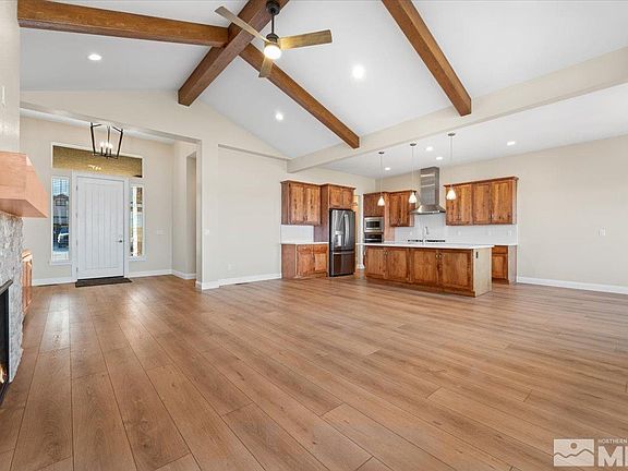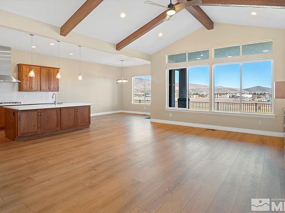 Location, Location, Location! This nearly new home is located on the 17th Tee of Silver Oak Golf Course with views of the golf course and the Pine Nut Mountains. The home is in beautiful move-in condition and there are views from every room. The Great Room concept allows for the easy flow of movement. A cozy fireplace will warm the winter nights. All bedrooms are spacious and you will have the benefit of 3 full bathrooms. The refrigerator, washer and dryer will convey through the Escrow process., The covered pavered patio is a great place to take in the views across the Eastern part of the valley. A 15 foot easement has been deeded to the property to allow for a lovely RV Parking area. The cul-de-sac location adds to the private setting. You will find 220 electrical in the finished garage.