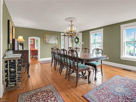 Welcome to the Alexander-Robinson House, a cherished Niagara Falls landmark built circa 1821. Steeped in history and character, this 1.5-storey heritage home has been lovingly preserved and thoughtfully updated, offering a rare blend of timeless craftsmanship and modern comfort. Set on a beautifully landscaped double lot (100’ x 163’) in the sought-after Stamford Centre neighbourhood, the property enjoys an enviable location directly across from Stamford Park. Inside, rich hardwood floors, four fireplaces, and elegant period detailing evoke the charm of a bygone era. The home offers over 2,200 sq. ft. of inviting living space, featuring three bedrooms, a sitting area, two bathrooms, a formal dining room, an elegant living room, a parlour, a kitchen and a summer kitchen too. Step outside into a private garden sanctuary — a professionally designed landscape with mature trees, vibrant flower beds, and a serene goldfish pond. It is also the home to one of Niagara's oldest trees. A detached greenhouse invites year-round gardening, plus the double garage, and gated driveway for up to 6 vehicles adds practicality to the property’s historic beauty. Rarely does a home of this heritage and calibre come to market. This is more than a home - it is a piece of Niagara history, lovingly preserved and ready for its next chapter. The versatile layout and timeless appeal make it an exceptional candidate for a bed and breakfast or boutique guest retreat, blending comfort and hospitality with heritage ambiance. Don't miss the opportunity to own one of the region's most remarkable heritage properties — a place where elegance, warmth, and legacy meet.