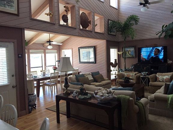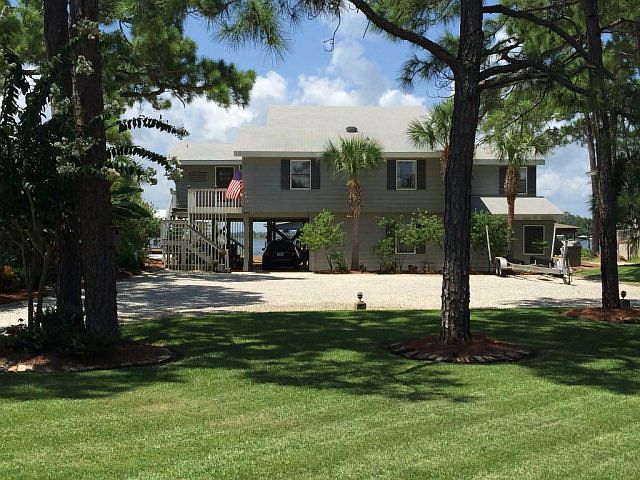 Boaters Dream, Deep Water, Boathouse with 2 covered boat lifts. Can accommodate 100Ft Yacht. 80Ft +/- on water with Expansive views of Bayou St John and Perdido Bay. Magnificent Sunsets, Great Fishing, Bulkhead With A Sandy Beach. Manicured yard has irrigation own well, and nightscape lighting. Also enough parking for all your family and friends. The home, Upstairs is a 3/2 open floor plan, with vaulted ceilings designed for entertaining. Downstairs is a private mini condo. One large bedroom and bath with open living area kitchen-dining-den combo. The home is charming, you will fall in love. Marlin Key, the best kept secret on Ono! Seller is a licensed real estate agent. Buyers to verify square footage.