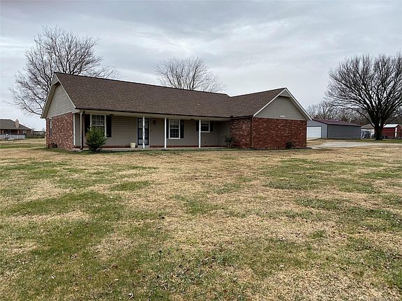 Come see how great country living could be & only minutes away from shopping. Country home on 2.5 acres m/l, 3 bd, 2 bath, new interior paint. Home includes brick fireplace with heat-a-lator, covered porch and patio, storm cellar and mature trees. 24X40 shop building w/electric & roll up door, covered area for RV parking. Lots of room for a garden. New roof & hot water tank. You don't want to miss this one!!