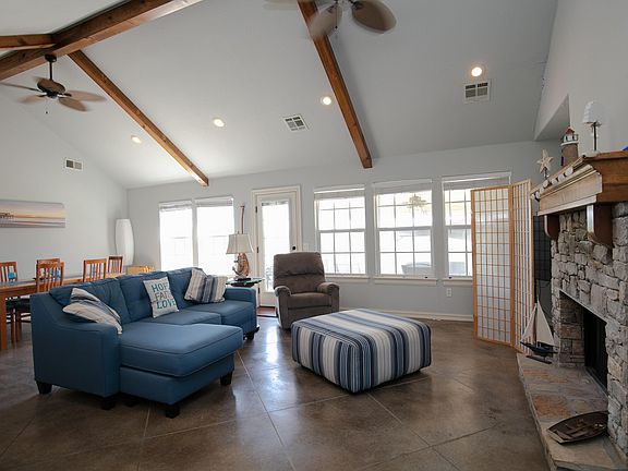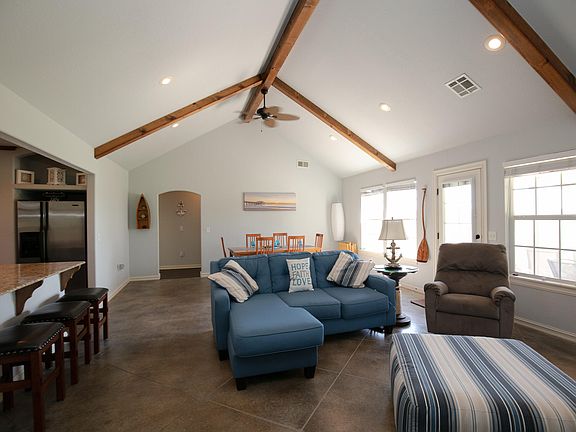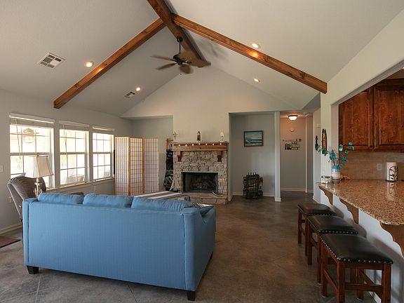 The Mockingbird Cottage is a one-level Tuscan style 3 Bdrm, located near the Golf Pro Shop & 16 acre practice facility . Excellent open plan w/ vaulted great rm & exposed beams, custom kitchen w/ granite counter tops,stone FP, stained concrete floors, primary suite w/ walk-in closet,powder bath, nice utility, NEW carpet, over-sized garage & covered patio w/ front row seats to July 4th fireworks. NEW garage door opener w/ wifi connection & thermostat w/ wifi. NEW ROOF June 2023