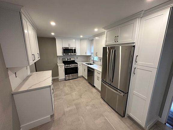 First floor has 3 bedrooms, bathroom, living room and new eat in kitchen with all new appliances. Total square feet of 1,650 includes finished basement. Covered front porch, rear yard, and patio area. The finished basement has a family room, additional room, full bathroom and laundry room. Nice yard and driveway parking for up to 3 cars. Close to NYC transportation. No Pets Available October 1st 2025 Owner pays for cold water tenant pays for gas and electric
