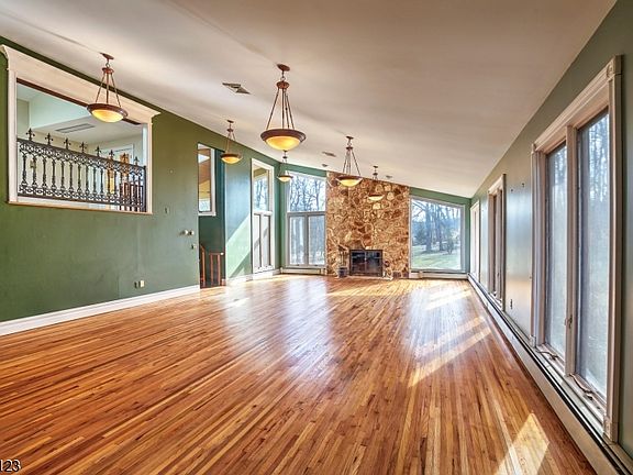 Five Chimneys Imagine having your own indoor squash court, a private office suite with separate entrance, and an income cottage, all on 30 acres. This property is held in two lots and is farmland assessed. The imposing Adirondack-style architecture suits this massive 8,050 square-foot home. The floor plan provides plenty of room for the multigenerational, work at home lifestyle and includes an elevator to all four levels. An 1,800± square-foot Morton building provides workshop space and extra garaging. An outdoor tennis court with stacked stone surround adds picturesque recreation space. This expansive home was substantially enlarged in 2003 and is distinguished by the unique floor plan so much in sync with buyer needs in 2021. Grandly-scaled public rooms feature antique imported doors, high ceilings and multiple office spaces. There are hardwood floors throughout. In addition to the living room, dining room, library, family room, great room and three-season room, a centrally located and well-equipped country kitchen provides space for two chefs to work side by side. GE Monogram Series appliances include a stainless steel six-burner cooktop with griddle and stainless hood, dual wall ovens, a warming drawer, a coffee appliance center, and a separate pastry countertop. A Miele steam oven, farmhouse sink, granite counters and eye-catching glass tile backsplash blend elegantly with the cherry Shaker-style cabinetry. A separate dining area provides glass doors to the 1,600 square-foot deck with a lighted gazebo for summer dining. The walk-in pantry is additional amenity. The connecting family room with brick fireplace adjoins a wet bar, leading to the 2003 addition. The floor plan expands dramatically into the 55 x 24-foot great room with an 18- foot ceiling. This vast space is anchored by a wood-burning fireplace detailed with a marble surround and handsome imported stone mantel. A graceful staircase as well as the elevator accesses an octagonal office space above. The gallery hallway leads to the main bedroom wing. The second floor holds the master suite with two master baths, a sitting room and radiant heating. The front staircase also accesses the bedroom wing. There is a hall bath servicing these four rooms with closets. The lower level has a separate entrance to the private offices, a media room and an exercise lap pool room and full bath. This space can also house overflow guests. A two-car garage services the main level and a one-car garage on the lowest level has elevator access. Outdoor amenities include a three-bay Morton building and a two-bedroom cottage reached by a driveway which splits from the main drive. The tranquil setting also supports outdoor entertaining and room to explore nature amid 30 scenic acres. There are woodland walks, open fields and a small stream. This home is located a few miles from the beautiful river town of Clinton with cultural events, museums, restaurants and shopping. Nearby towns along the Delaware River include New Hope, Frenchtown and Lambertville for art galleries, fine dining, eclectic shops and country inns. Outdoor activities include local nature trails and the Franklin Trail system for horseback riding. North Hunterdon High School offers S.T.E.M. programs and Interstate 78 is close by for commuters.