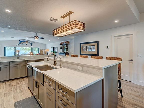 7 minute jog to beach, totally renovated/updated beautiful modern mid-century home with high-end appliances and wood-look porcelain tile throughout. Quartz kitchen and bath countertops, huge yard with room for a pool, mature landscaping, fenced yard, 1 car garage for your convertible!