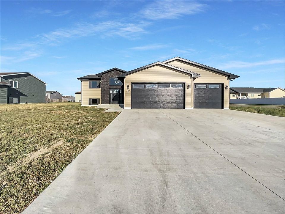 This smartly designed split foyer has a G R A N D entry with tons of stonework, stately front door and transom window to bring in loads of sunshine! The kitchen, living, and dining spaces are seamlessly united thanks to high quality plank flooring. The kitchen features abundant cabinetry, sleek slate appliances and a well positioned island for entertaining. The master suite is large with a huge walk-in closet and private full bath. The main floor is complete with a second large bedroom and full bath. The full basement has a large family room, two daylight bedrooms, third full bath and laundry room. The triple garage is insulated, heated, sheet rocked and has a floor drain. Situated on the west side of Surrey, this home is just minutes from all the conveniences of Minot yet offers the escape of small town living and a smaller school system. This home is quality constructed by L O C A L contractor (Precision Plus Construction LLC) and all local sub-contractors!