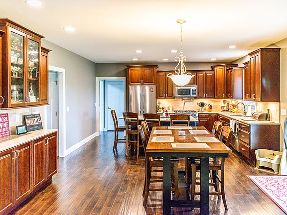 Signature home built "Modified Oakmont III" Plan with 5 bedrooms and 2.5 bathrooms. The main floor offers a formal and informal dining area's with Hand scrapped birch hardwood floors that carry into the kitchen with custom Merillat Masterpiece cabinets, Cambria quartz counter tops, and Viking appliances. There is also a 16x16 Covered patio with foundation for future upgrade. The master suite has a walk-in closet with built-in shelves and a nice tiled master bathroom with Cambria quartz tops, and 3 head walk in shower. The laundry is also located on the second floor with additional 3 bedrooms. Agent Owned