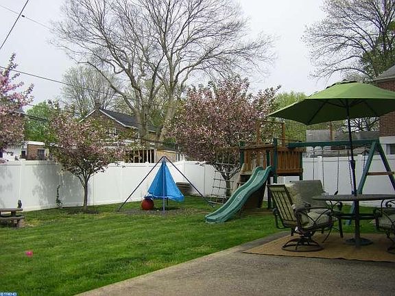 Welcome to this move in condition home nestled in a desirable area of Springfield Twp. Just a short walk to the library, tennis & basketball courts, park/playground, shops, and trolley. This home features a freshly painted living room with hardwood floors, the bright dining room has been freshly painted with hardwood floors flowing into an open concept kitchen. The new kitchen features wooden cabinets, granite countertops, microwave, recessed lighting, and breakfast bar. The kitchen has an outside exit leading to a patio in the rear yard for summer grilling and entertaining. The second floor features main bedroom with ceiling fan, hardwood floors, and double closets, the refinished hardwood floors shine in the hallway leading to the additional two bedrooms. One of the bedrooms offers a double sized built-in closet organizer. The hall bathroom is neutral with new fixtures. A bessler staircase leads to a partially floored attic for additional storage. The lower level of this home has a finished family room with wall to wall carpeting. In addition, there is a laundry room and utility room with additional storage. This lovely home has a private driveway leading to a two car detached garage with electric opener. The fenced rear yard provides a private area for entertaining. Replacement windows, central air, freshly painted, refinished hardwood floors. This charming home is ready for you to move right in! Easy access to 95, 476, airport, Philadelphia, and Delaware.
