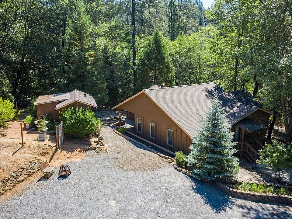 Beautifully maintained mountain hideaway located in Lynn Park Acres, which has been Lovingly Remodeled throughout with views and sounds of the Mokelumne River. Remodeled in 2016, including knotty Alder custom kitchen cabinets with Quartz counter tops, Stainless steel upgraded appliances, remodeled bathrooms, double hung Pella Windows and French patio door opening to the deck. Very private location with beautiful established flower/vegetable garden and orchard areas . Sit on the new redwood deck and enjoy the view and soothing sounds of the Mokelumne River nearby.