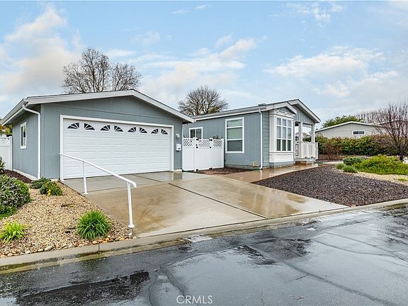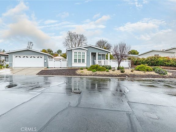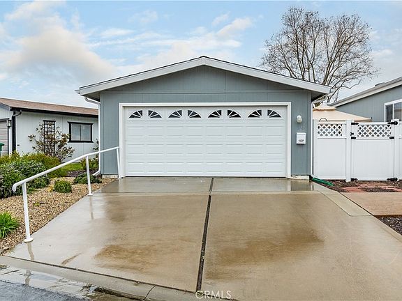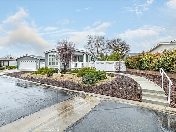 This lovely Skyline manufactured home is nestled in the sought-after Quail Run Senior Estates, offering ownership of a generous 10,000 square foot lot. The home itself spans 1,527 +/- square feet of efficiently designed living space, boasting three bedrooms equipped with stylish ceiling fans and two elegantly designed bathrooms. Upon arrival, you’re welcomed by a charming front porch ideal for savoring the pleasant days of Paso Robles wine country, complemented by a roomy detached garage for two cars. Inside, you’re enveloped in high-quality finishes that exude both comfort and value. The living room’s nine-foot ceilings are accentuated by a sophisticated tray inset with crown molding and a ceiling fan, adding a touch of luxury. The floors are adorned with elegant laminate and plush upgraded carpet, alongside 5 1/4” baseboards throughout the home. The kitchen and dining area, designed for hosting, feature a large island, stainless steel appliances, granite countertops with a subway tile backsplash, and superior cabinets. Tucked at the home’s rear is the secluded primary suite, complete with a sumptuous bathroom, walk-in closet, and dual vanities. Outside you'll enjoy beautifully landscaped yards, fruit trees, raised planters with herbs, lots of flatwork and rain gutters with leaf filters. Quail Run Estates offers a gated entry, pool & spa, tennis courts, pickleball court, guest parking, clubhouse with many fun activities including wine tasting, bingo and so much more! Hurry this one won't last!