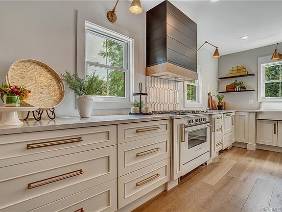 A rare opportunity to move into new construction in downtown Guilford. The curb appeal of the house, with covered front porch, wide steps, and salt boards is just the beginning. Every inch of the three-level home has been meticulously crafted, with gorgeous details around every corner. The chefs kitchen features leathered quartzite, luxury appliances, and a restored 1940s farm sink. Coming home after a day at the beach? Enter from your cabana entrance and clean up in your very own locker before heading upstairs. Want to relax with a cup of coffee? Sit out on the deck when the sun is shining or cozy up in the breakfast nook. Entertain loved ones inside or out, mix drinks at the wet bar, and at the end of the day, retreat to your master ensuite. Walking proximity to the Guilford Green, waterfront restaurants, and Jacobs Beach, this home, constructed by The House that Social Media Built, is not to be missed. Call today for your private showing.