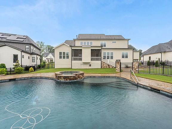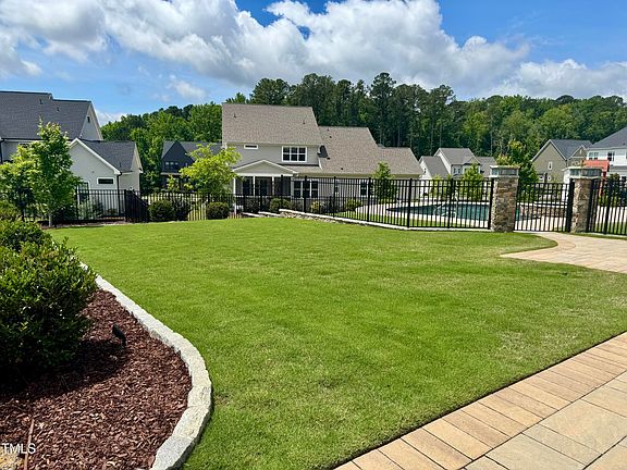 ALMOST NEW Luxury Brick Home with SALT WATER POOL and exceptional high-end finishes located within one of Wake County's most desirable school districts. Step into elegance with custom millwork, built-in cabinetry, and wide plank hardwood flooring. The gourmet kitchen is a chef's dream—featuring Electrolux appliances, quartz countertops, a large island, farmhouse sink, walk-in pantry, and sunny breakfast nook. Enjoy the screened porch with fireplace, overlooking the POOL and fenced backyard. Other features include First Floor Primary suite, additional first floor bedroom suite, home office. Plantation shutters and remote-control shades and 3-car garage.  A truly stunning home inside and out!