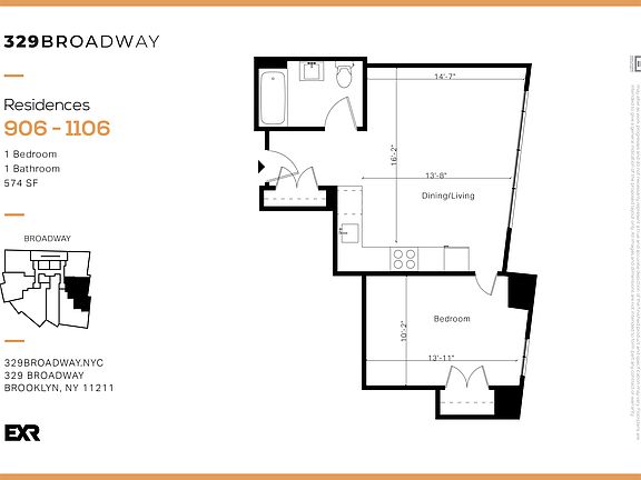 1 Bed, 1 Bath at 329 Broadway a brand new luxury building steps from the Marcy JMZ. 329 Broadway is a luxury Brooklyn apartment complex with a commanding presence. Poised to become Brooklyn's most desirable address, this spectacular building boasts state-of-the-art construction, a contemporary aesthetic, and undeniable sophistication. Located in Brooklyn's South Williamsburg neighborhood a section of the bustling borough that houses some of the best nightlife, dining, cultural centers, parks, and plazas that New York City has to offer. *Unit Features* - Natural Light - Stainless Steel Kitchen Appliances - Dishwasher - Central A/C and Heat - Hardwood Floors *Building Features* - Elevator - Laundry Room - Gym - Shared Common Area - Co-working Space - Rooftop - Bike Room - Package Room *There is a $75 Hot Water Charge*