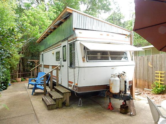 Perfect get a way in Spanish Cove!. RV lot with concrete driveway & very large pad. Backs up to the wilderness. Very nicely landscaped. Fenced & Has storage shed. Back yard with fruit trees. RV trailer is of no value but does work. Has window air & heater. RV has covered metal roof. You can use it or haul it off the lot. Beautiful lot! Spanish Cove amenities include year round pool, fishing pier, tennis courts, 2 clubhouses, excerise building & 24 hr security. Close to beaches & Pensacola Naval base. Buyers to verify any information they deem important.