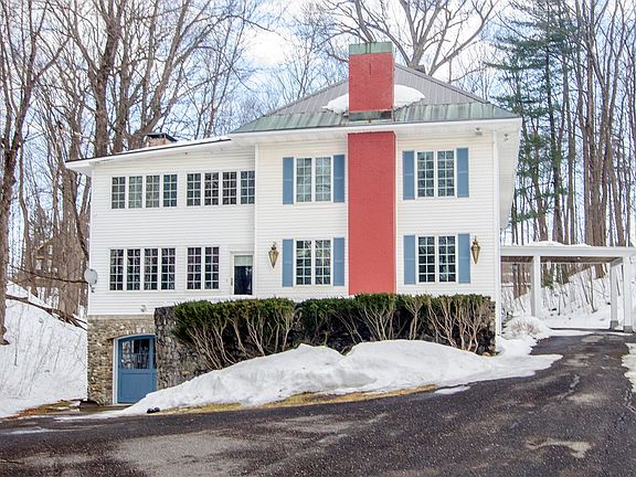 a very gracious country oasis within the village, and straddling the US/Canada border. Main entrance via the porte cochere. HUGE rooms. Stone walls. Stone patio overlooking the private pond. Furnished except for personal items. List on file. 2 fireplaces. Partially finished walk out basement. Complete privacy with in town living. Most of the house is in VT. More of the land is in Quebec. Supposedly the northern side was added on during Prohibition. Locally referred to as the Butters Glen Brook Estate. Lovely hardwood forest for privacy on the Quebec side. Maids staircase with direct kitchen access from the second floor. Walk up attic. Heated 2 car garage. Most furnishings are included.