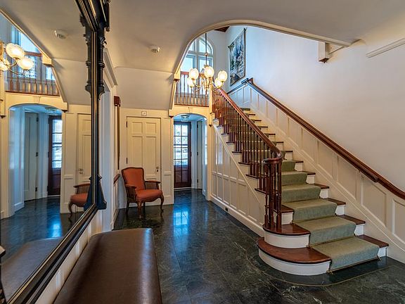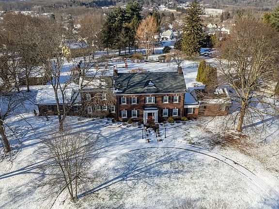 This 1923 Georgian Style home offers over 4900 square feet of living space and is situated on a large 5.9-acre estate. This home's impressive center foyer and open staircase set the stage for the homes continued grandeur throughout with formal dining room, large living room with fireplace, impressive kitchen, and first floor en suite with fireplace and veranda. Second floor offers another large en suite with fireplace, a large library, which could also be a 5th bedroom, and two more bedrooms and full bath. The third level offers another bedroom and private bath. The stately grounds offer many exquisite water statues, formal maze garden, ponds, grape vines, gazebo, barn, and inground pool. This home has so much to offer and has endless possibilities. Come make this your home or a possible venue.