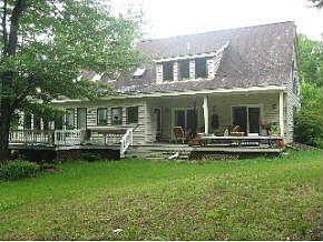 Beautiful, private setting for this contemporary colonial with inviting entry porch, wrap around covered and open deck with French doors, and oversized garage with loft. Two-story entry with light filled rooms, seven skylights, loft overlooking family room, wood stove in living rooom, great open floor plan and laundry on the second floor. New French door refrigerator, double oven, dishwasher and microwave. Enjoy the woods through all windows.