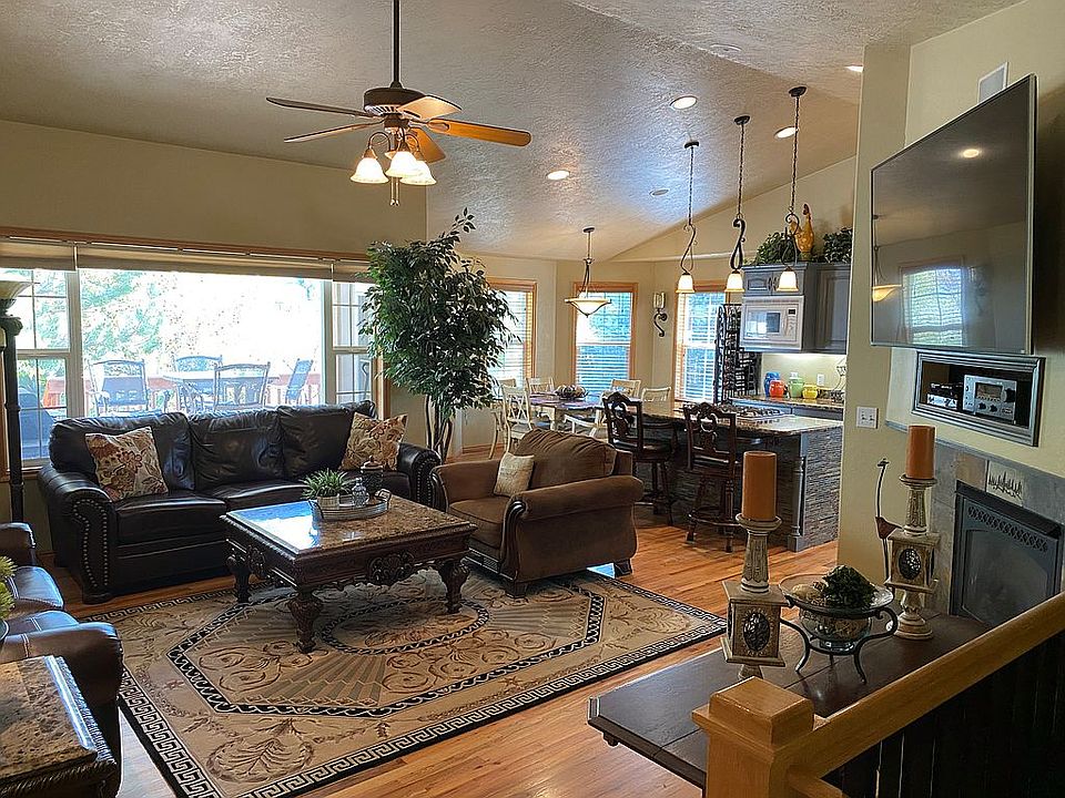 Beautiful walkout ranch with 3 bedrooms upstairs and one downstairs, open kitchen to family room includes granite countertops and undermount sink, large entertaining family room with wet bar in lower level. Oversized lot including three car garage and RV pad, full sprinkler system with deck including gas to the grill and stairs down to the fire pit. Fully fenced back yard with mature trees.