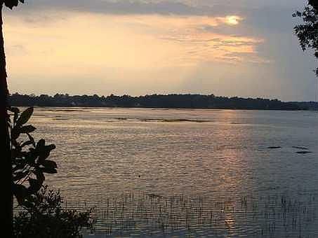 Enjoy magnificent views & beautiful sunsets over looking the Battery Creek from 3br/2b home located in Cottage Farm. This split open floor plan has large vaulted ceilings, large family Rm with gas fire place with great views of the water. Open kitchen with island and breakfast room or keeping Rm. Large master suite with walk-in closet. Large mud room with separate laundry Rm. over sized one car garage with new delux garage door(1 yr). Freshly painted Hardie plank and new A/C unit. Deck with built in seating