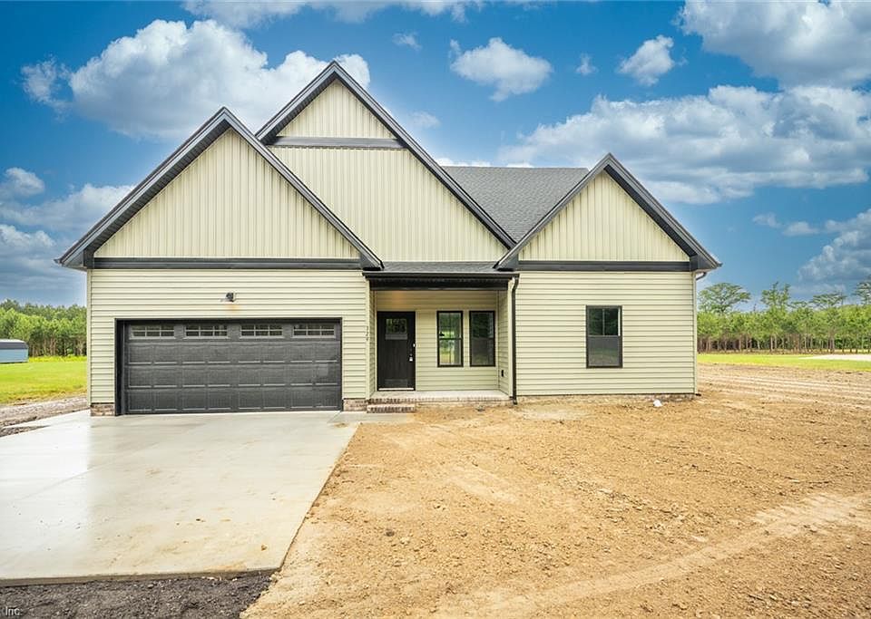 Welcome to 329 Country Club Road located in the heart of Camden, County! Stunning new construction move in ready 4-bed, 2.5 bath home on 3.30 acres with wooded privacy in back. Enjoy LVP flooring, 9’ ceilings, and a main-level primary suite with walk-in closet, dual vanity, and ceramic tile shower. Kitchen and baths feature granite counters, soft-close cabinets, farm sink, and upgraded hardware. Mud room includes custom built-ins. Located by Pasquotank River access, US Coast Guard Base, HWY 17, Virginia and the OBX. Commuters or weekend adventures welcomed. Comfort, style and location all in one!