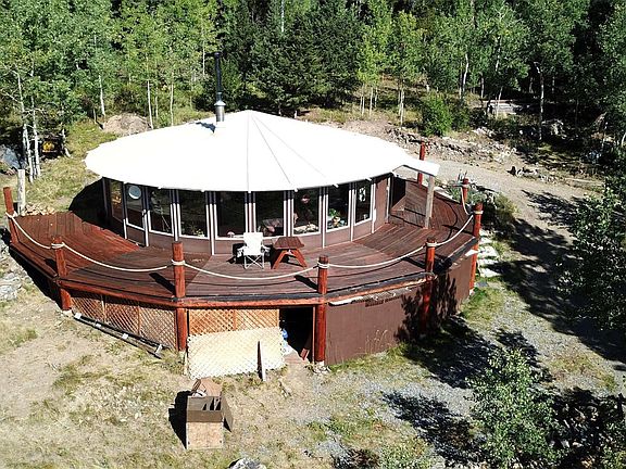 Prime Location with Stunning Views. On top of the world, next to very walkable National Forest with rock outcroppings and panoramic views. Nobody behind you. One neighbor. Center Peak Round House with pie wedge ceiling constructed on 10" posts. Open Floor Plan with 12' peak and a wall of windows that capture a magnificent setting. Sedore USA High Efficiency Downdraft Stove. Central Vacuum. Two Refrigerators. 2017 3 phase well pump, newer pressure tank, water heater, and computerized Rain Soft water softener. Custom drawers in kitchen. Custom bedroom shelving. Heated bathroom tile floor. GACO 50 Year Silicone Shield on roof. Double sealed. New Front and Rear Doors. New heavy duty deck boards, stained and sealed. Storage Under Deck. Beautifully landscaped property. RV parking facing Mount Evans. Ample Parking. Must see to appreciate. 2018 Taxes only $379. High producing well.