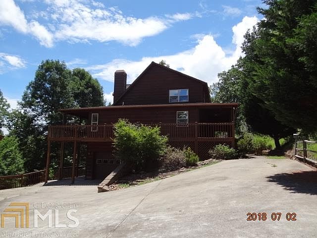 CABIN STYLE BEAUTY minutes from Downtown Blairsville. Peaceful Setting overlooking backyard & pastoral pasture view. Plenty of Room to Roam here with 4 bedrooms, 4 baths, Master on Main. Floor to Ceiling Rock FP to gather around in this open concept Great room, Dining and Kitchen. Kitchen has all appliances, solid surface countertops and island bar for entertaining. Wrap around decks and terrace level finished with bedroom and bath. Great Shop area too. This is a Fannie Mae HomePath Property.