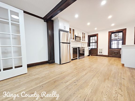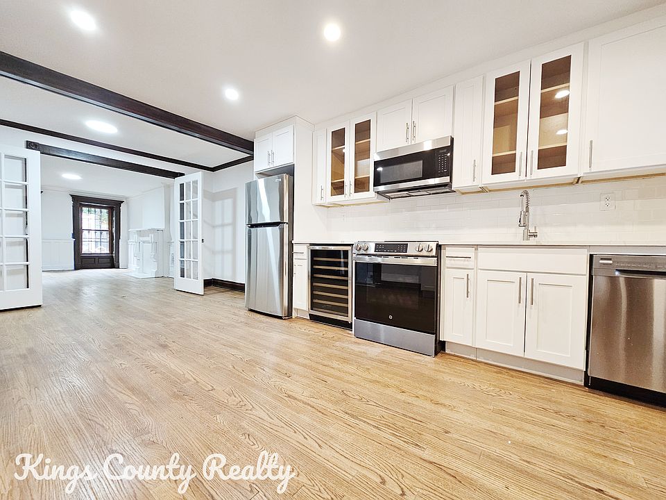 A rare and beautifully renovated three-bedroom, three-bathroom triplex is available for rent. This spacious 2400 sq ft home is located in a stunning brownstone residence in Stuyvesant Heights. Features : --Preserved historic details --Hardwood floors throughout -- Huge open layout --French windows --Stainless steel appliances --Washer dryer --Dishwasher --Central air --Wet bar --Wine cooler --Rainfall shower heads --Smart anti fog mirrors --Large private backyard --King sized bedrooms --Very sunny --Decorative fireplaces --Multiple private entrances --Beautiful Brownstone uniformed block The Utica Avenue A/C subway line is a mere two-minute walk away. The property is also conveniently located near acclaimed restaurants such as Saraghina, L'Antagoniste, and Peaches Hot House. -- Easy application process -- 40x rent | 700+ Credit Score -- Guarantors are accepted Pets Allowed