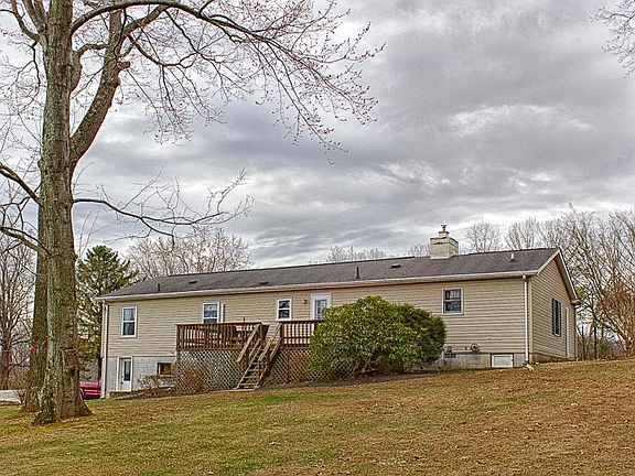 Watch the deer from your deck! Over 2 acres with beautiful countryside views. Spacious Ranch style floor plan plus Lower level has been finished with laundry area and additional family room. This home has been very well kept and offers a pellet stove, corian counters & tile backsplash in kitchen, Master bedroom suite with private bath, Storage shed & more!