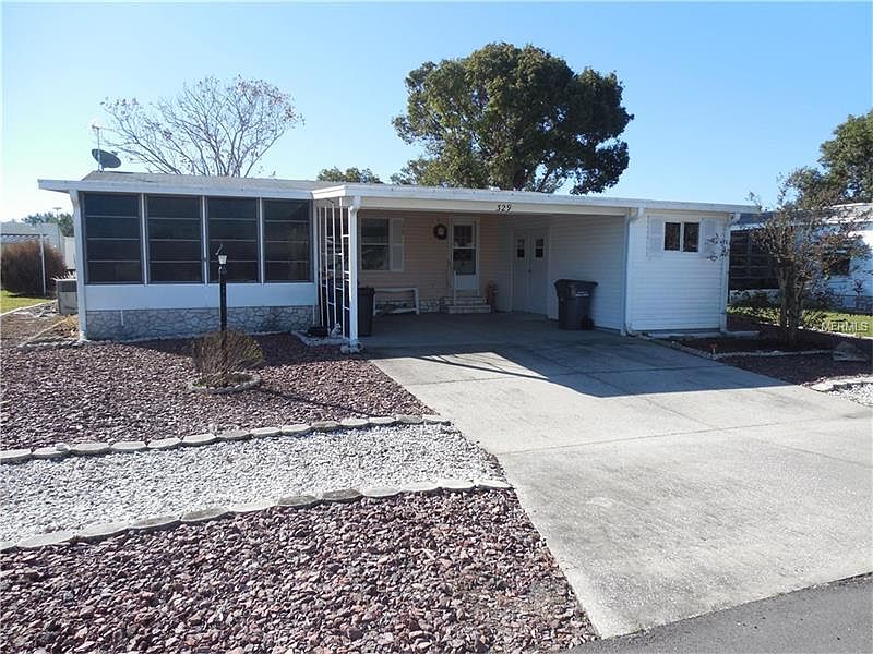 Three bedrooms and priced to sell quickly. Split bedroom plan, and third bedroom has French doors (which are stored in the shed). It is currently used as an office. The kitchen is large with nice cabinets. It has a built in China closet and room for a table and chair set. The laundry is found off the kitchen. There is a new skylight in the kitchen and also one in the guest bath. The living room is roomy with a nice window in the front. The vinyl room is on the same level as the rest of the house. The master bath has a walk-in closet. The front of the house has stones and the rear has mulch. NO mowing. There is a nice shed which is 7x18. Own your own land with HOA fees of only $500 a YEAR. Two clubhouses and 2 pools, workout room, library, pool tables, tennis courts, golf course, shuffleboard courts and lots of activities.