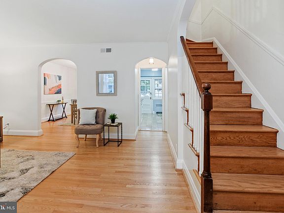 This charming Rodgers Forge home is so welcoming that you'll want to be here for the Holidays.! Spacious 3 BR 1.5 BAand an estimated 1880 square foot brick townhome features, Central AC, 1 CAR GARAGE, newly refinished hardwood floors throughout in Natural Oak this October 2023, FRESH PAINT in Soft White 2023, Large Attic with Storage and Stairs, Secluded yard, 2019 RENOVATED KITCHEN.  Lower-Level Recreation room with 2023 LVP wide plank wood look flooring and Storage room with closets and laundry and half bath.  Home also features BAY WINDOW, Hardwood Floors, Subway tile, Butchers Block, and lots of sunny windows. Located across the street from the middle and elementary school with open grounds for walking, sports fields, a tennis court and the dog park and close to commuter access and minutes from shopping and restaurants.