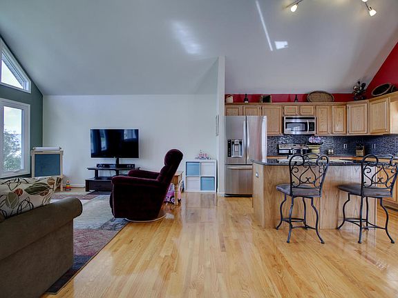 Spacious home, lots of natural lighting, vaulted ceilings, open floor plan, beautiful hardwood floors, granite counters and natural stone backsplash. Three nicely sized bedrooms including master with office and lots of closet storage. Nice stamped patio. Finished lower level. 2 car garage. Large yard, nearly 1/2 acre.