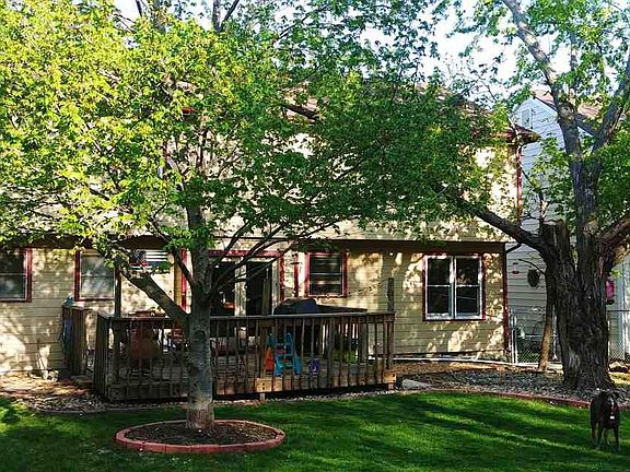 Dramatic vaulted entry in this 2 story home! Main level features living room with a stone fireplace, formal dining and eat in kitchen. Laundry is on the main! Kitchen area leads out to the deck and fenced backyard. Mature trees surround. Upper level consists of all the bedrooms and two baths. Basement has a family room area, bar, bath and storage. Home features cement siding, newer roof, furnace, paint, and lighting.