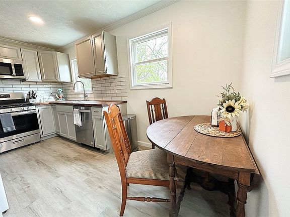 Welcome to this charming and updated cape cod style home that is move in ready! Walk in to a newly renovated eat in kitchen filled with warm colors and butcher block counter tops. To the left is a large living room with a small entryway from the front door. Also on the first floor are two nicely sized bedrooms and a completely remodeled full bathroom. Upstairs you will find a large bedroom with built ins and a partial bathroom. There is an additional room upstairs that has flexible use! The basement allows access to the integral garage with a new retaining wall just outside. There is a new hot water tank and furnace replaced within the last year. Behind the home offers plenty of off street gravel parking and a large yard. The house also has new siding, new sidewalk, new AC unit, and some newer windows. Conveniently located, this home is a must see!