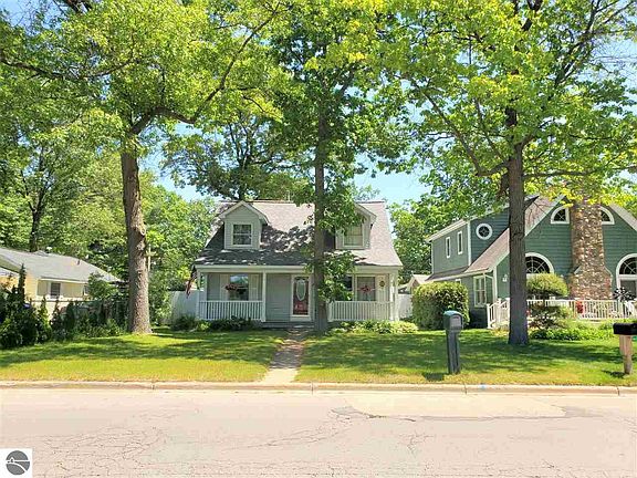 Ideal in-town location! Enjoy the year-round walking path, public pool and ice rink at the Civic Center across the street, or just enjoy the view of the park from your covered front porch! Above the detached 2-car garage is a large unfinished space, ideal to finish as a separate apartment for friends, family or rental. The inviting fenced-in backyard with spacious deck is perfect for entertaining while keeping your kiddos and 4-legged family safe! This quaint cape cod home is within walking distance to NMC, beaches and shopping!