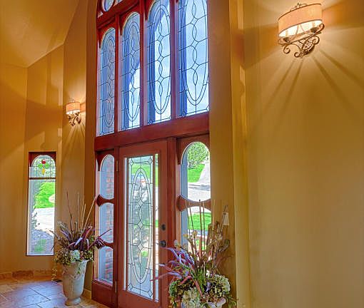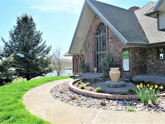 Stunning open balcony entry welcomes you into this one of a kind brick home! Main level takes advantage of the panoramic river views, visible from the living, dining, kitchen & master suite. Gourmet kitchen has over sized stainless fridge, granite counters, gas range & double wall oven. Beautiful wood accents, dramatic staircase, ornamental windows from a historic church & coffered ceiling in formal dining add so much charm & character. Daylight walk-out basement. Large back deck is perfect for enjoying the scenery. Approx 317' of Missouri River frontage, surrounded by other high end luxury homes in prestigious neighborhood.