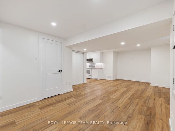 Bright modern basement studioOpen-concept layoutHigh-end laminate flooringPot lightsUpdated kitchenRainfall shower with wandTiled bath