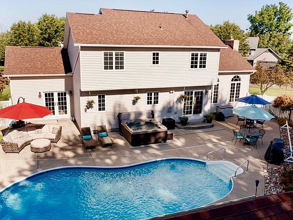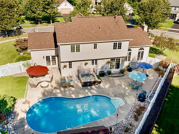THIS HOUSE HAS IT ALL!!Don't MISS this Immaculate, Meticulously Maintained & Updated 3 Bedroom Contemporary Colonial home with In-ground Pool (New 2014 liner/deep end is 8' deep) & Finished Basement. This Gorgeous home features many New upgrades including a 2021 Remodeled Kitchen with Dove Tail Soft Close drawers, Solid surface counter tops, Stainless Steel appliances (gas stove professional grade), Recess lighting, Huge Island & Beautiful Wide Plank Laminate floors. Entertaining in any season with this open floor plan Kitchen/Dining Area/Great Room which includes a Gas Fireplace & Cathedral Ceiling. In the Summer Entertain & enjoy the In-ground pool with Pool House, Hot Tub, Large Concrete Patio & Finished Garage with Epoxy Floors, Ship Lap Walls, Sliding Screens, French Doors to the backyard, Full Surround Sound (Ethernet Cable), Other Updates include 2021 Windows (lifetime warranty for the seal & breakage) Newer architectural shingle Roof (Tear off 2010), 2017 Hot Water Tank, Finished Basement with Office, Great Room, Wet Bar, & Laundry room, Additional Detached Garage with Loft & Driveway. Whole Yard Sprinkler System, NO Delayed Negotiations.