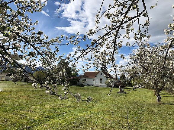 This charming farmhouse is a one of kind find, conveniently located close to town and recently remodeled. This gorgeous home boasts 10 foot ceilings, an open flow floor plan and is bright and inviting yet warm. With 4 bedrooms and 2 full bathrooms, plus a bonus living area on the second level, this home offers 1,732 square feet of living space. There are many recent upgrades throughout the home including new locally sourced sustainable blue pine flooring in the kitchen and dining room, new slate finish appliances, a new front deck with accessible ramp and both bathrooms have just been remodeled beautifully. This home sits on 1.34 acres with apple, cherry and pine trees and open space for more. Property has irrigation rights, multiple outbuildings, walk in basement and the biggest bonus is the newly resided 1,200 square foot barn which has county approval for a bathroom connected to the house’s existing septic system. Truly a slice of heaven.