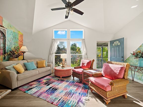 Tropical landscapingIndoor laundry roomBrand-new furnishingsLush lawnsLuxury plank flooringVaulted ceilingsAbundant natural light