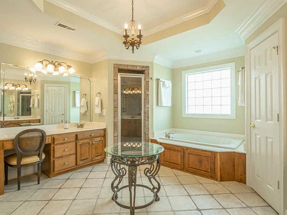 • Wet Bar, Double Vanity, Walk-In Closet(s), Vaulted Ceiling(s), High Ceilings, Gas Logs, Separate Shower, Bookcases, Cable TV Connections, Foyer - 2 Story, Entrance Foyer, Hardwood Floors, Tile Floors, Whirlpool Bath, Carpet, Tray Ceiling(s)