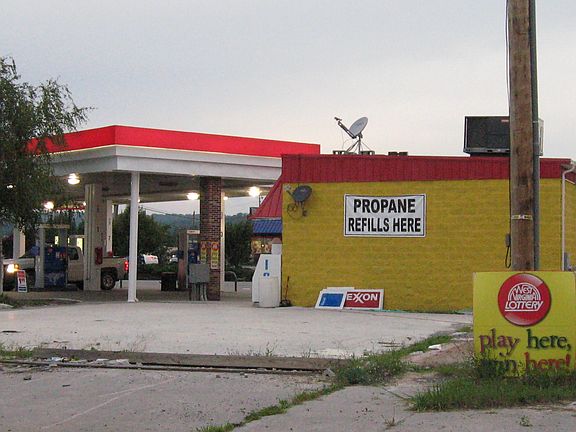 Exxon branded gas station/ Colony Center and convenience store but store now open. . Steel and aluminum canopy is self-standing and measures 40x80 feetwith store 2500 sq. Three 10,000 gallon fuel tanks with 5 dispensers and pumps. Street and highway signs, very valuable. Corner lot with great visibility and traffic flow at Rt. 460 interchange. This property is good for another convenience store or multiple commercial use. Property has been surveyed into 2 parcels. For extra $50K, owner will remove canopy and u/g fuel tanks. askink price is 450,000/304 716 6108