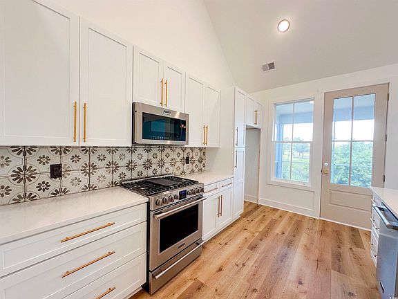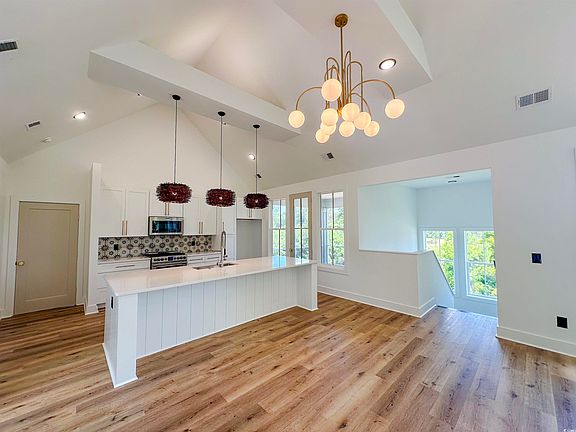 Nearly complete and ready to be your new home! Amazing Views of Winyah Bay, Live Oaks and Unbelievable Master Suite!! Strategically positioned overlooking the Winyah Bay, this home takes advantage of the spectacular views while escaping being in a flood zone. Nestled between two 300 year old Heritage live oaks, this transitional 4 bed 3.5 bath has plenty of Southern charm. The exterior has many details including metal roof and beams add to its lowcountry appeal. Brushed brass fixtures with a mid century modern flair and Frigidaire appliance package make this kitchen a chefs dream. Feel like you are on an endless vacation in the Owners Suite, with a 14x12 custom walk-in closet with Island. The owners bathroom continues pouring on the charm with beautiful tile and a free floating tub tucked in its own cubby for some relaxation time. Downstairs are 3 bedrooms, two bathrooms, living room/den and a mudroom with laundry area. The living room will have cathedral ceilings with beams and a porch with amazing views of Winyah Bay! This home is constructed to withstand even the strongest storms. Other features include tankless hot water heater, tile showers and lots of parking/storage. South Island Plantation is a gated community full of live oaks on Winyah Bay at the southern end of Georgetown. It is less than 60 miles to historic Charleston, SC and 40 miles to Myrtle Beach. Just a few miles to Georgetown's Front Street with boutique shopping and dining. This community has a beautiful clubhouse with a fitness center, an outdoor pool and outdoor walking and biking trails!