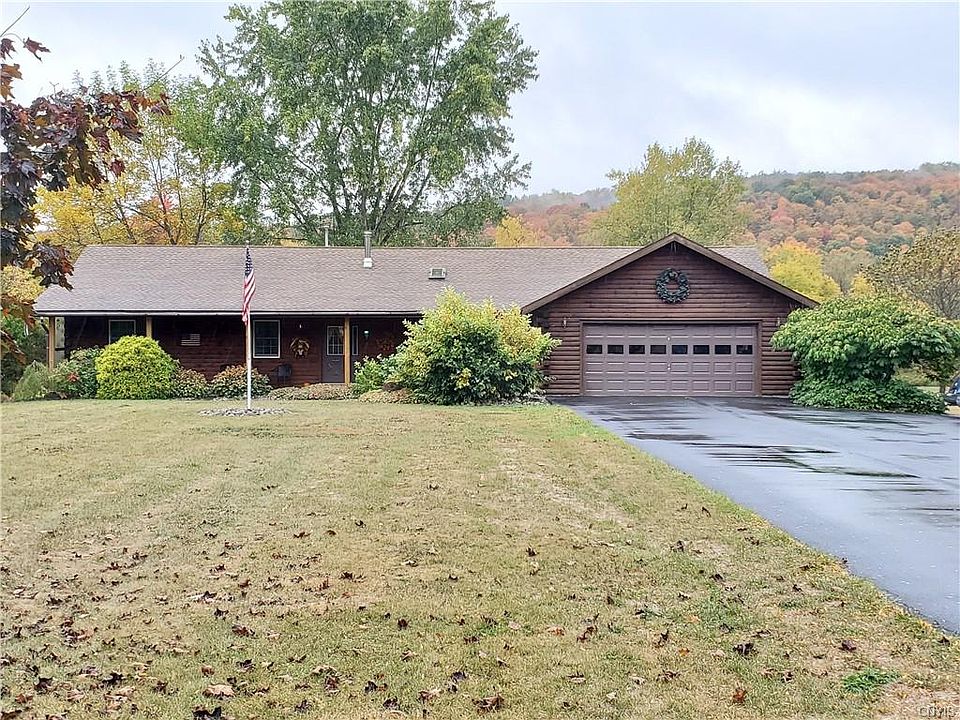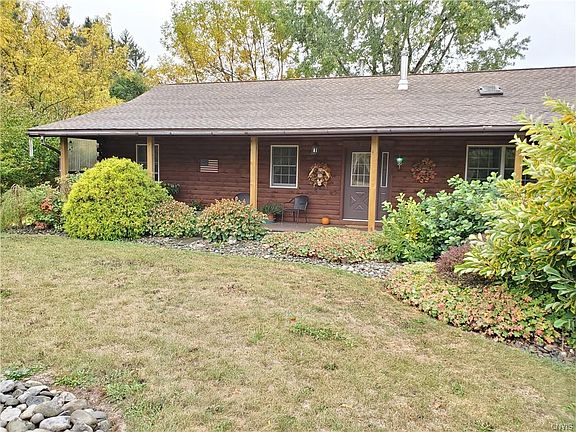 Home is where the heart is and it will be hard not to leave your heart behind on this gorgeous 3 bed 2 bath Log Cabin Ranch located just outside of Groton. The wonderful landscaping and the covered front porch make you feel welcomed the minute you step out the car. Once you enter the home your greeted by a vaulted ceilings, a living/dining room combo and eat in kitchen! Head down one hall to the living area with 3 beds( Master suite included) and addition bathroom or the other to the laundry room and family room. Full unfinished basement that is huge and has the potential to be finished! If the inside was not enough step outside to just under 3 acres(mostly lawn) well maintained pond with newer dock, brand new back deck and porch and surrounded by the beautiful valleys of CNY!! Make your appointment today, this won't last long!!