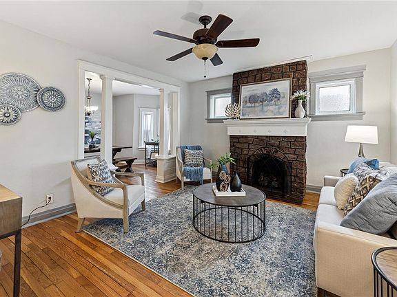 Wonderful home with updates and old world charm. Granite stone home with awesome covered front porch! High ceilings, beautiful hardwood floors, impressive stone fireplace (gas with remote). Architectural columns along front of home. Nice custom kitchen with built in window seat, 42 inch cabinetry, gas range, ceramic tile floor and the perfect floor to the spacious dining room with bay window. This space is ideal for entertaining, whether inside or out. The 7x10 screened porch is great little spot for outdoor dining or move to the large patio for an evening firepit session. There is a bedroom/office on the first floor, updated full bath. Upstairs you will find two spacious bedrooms and another full updated bath with shower. All windows are updated throughout. Furnace was updated in 2017, driveway and patio in 2019. This home is move in ready with large level fenced yard. Close to Webster-shopping, schools and Hwys 64/40 and 44!