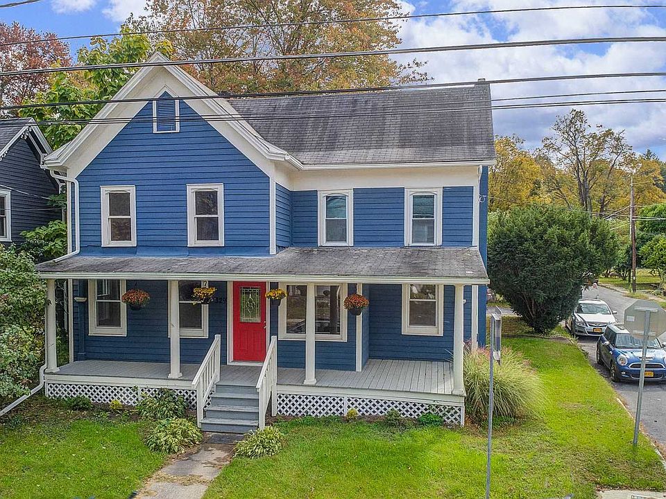 Restored turn of the century charmer on Main Street in Rosendale. Spacious dining room and updated kitchen with new stove, refrigerator and dishwasher. Brand new first floor half bath/laundry room with new washer and dryer. Remodeled sunroom with six large new windows would make a wonderful artist studio or extra room for overnight guests. Three bedrooms upstairs and an all tile bathroom with stained glass window and built in bathtub seat. Hardwood flooring and carefully preserved details throughout. Rocking chair front porch. New energy- saving propane furnace, lighting and electric. Nothing to do but move in. Detached one car garage make this adorable corner lot beauty a great find. All within walking distance to restaurants, theater, library, Rail Trail, Rondout Creek and Trailways Bus Route.