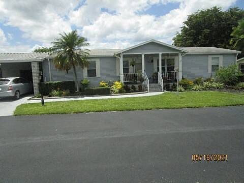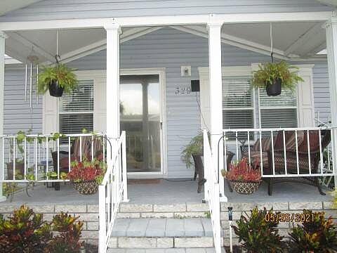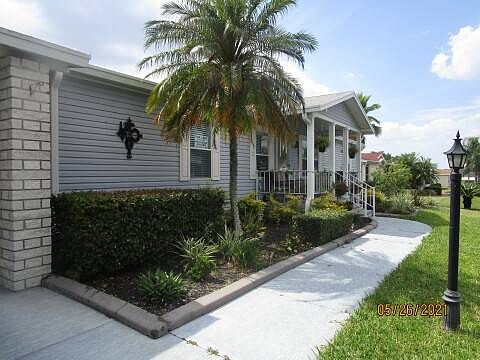 WOW! This 2004, 26 x 60 Home of Merit, located in Windmill Village, a 55+ exclusive community in Davenport, is tastefully decorated and is being offered partially furnished. It is well maintained and beautifully landscaped, with an eye-catching rear garden view, from the 10 x 21 Screen room. There is a side entry, off the double carport, a 9 x 20 shed with garage door and a welcoming, raised, covered front porch. Interior features include: a spacious, living/dining area with vaulted ceilings, a tray ceiling over the dining table, beautiful laminate flooring, drywall walls, plantation blinds and 6 ceiling fans. The Galley kitchen has tile floors, wood cabinetry, under cabinet lighting, a large pantry, all appliances, indoor laundry with GE washer/dryer and a glass/wrought iron dinette table with fabric chairs. The master bedroom has 2 walk-in closets and the ensuite has double vanities with separate water closet and a walk-in shower. The guest room and den are off the hallway, with a built-in linen closet and the guest bath has an Octagon window and tub/shower surround. Exterior features include: Vinyl siding, shingle roof, 30 gal. Water Heater, C/H/A, sprinkler system, and fruit-filled citrus tree. This home is PRICED TO SELL QUICKLY! Do NOT miss seeing this IMMACULATE HOME!. Call Jean for appointment to view.
