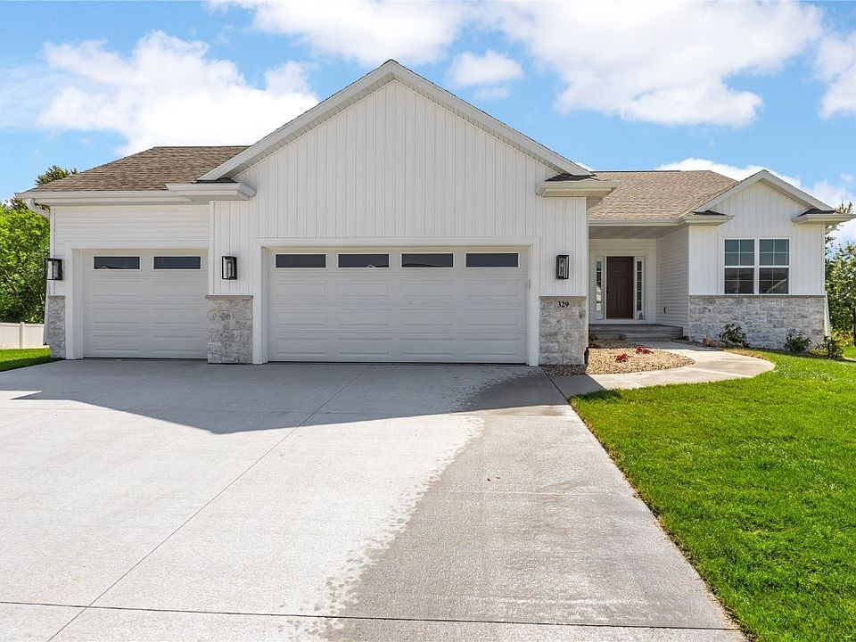One of the best lots in Linn Mar district is at 329 McCarran Ave NE. This home features a park like backyard with views of lush green grass and mature trees. There are no rear neighbors and the large windows allow ample natural lighting throughout. The great room has a built in fireplace with stone surround, built in cabinets for extra storage, and a large open kitchen complete with soft-close cabinetry, hard surface counter tops, and walk in pantry. The primary suite is separate from the other main level beds, offering extra privacy and a true suite like feel. The primary features dual sinks, custom tiled shower, and large walk in closet. Downstairs, enjoy the oversized rec. room and large bedrooms for guests or at home offices. This home is truly one of a kind and is in the most sought-after NE side community. Contact listing agents for a tour or to learn more about Prairie Landing.