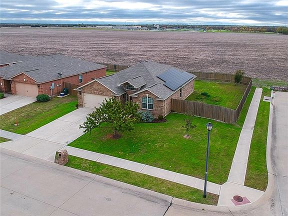 Come see this great, updated, open-layout home in the heart of Anna, just minutes from McKinney. Enjoy a large corner lot on a dead end street that backs up to a beautiful country view. This home features granite kitchen countertops, ceramic tile, fresh paint, new carpets, new window treatments, landscaping improvements, new patio ceiling fan and shade, new gutters, & SolarEdge solar panels that are tied in to the electric system. Watch gorgeous Texas sunsets over the country view from the large covered patio. This home is a must-see with no HOA.